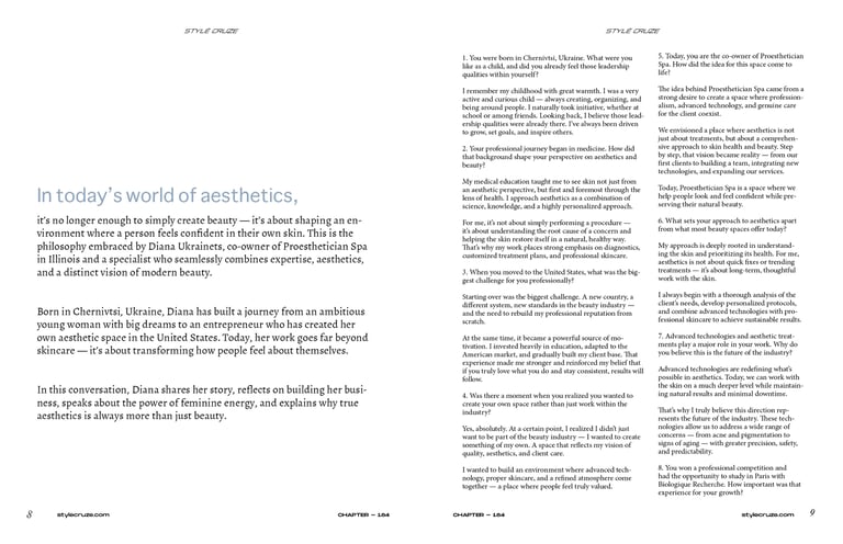 In today’s world of aesthetics, it’s no longer enough to simply create beauty — it’s about shaping an environment where a person feels confident in their own skin. This is the philosophy embraced by Diana Ukrainets, co-owner of Proesthetician Spa in Illinois and a specialist who seamlessly combines expertise, aesthetics, and a distinct vision of modern beauty. Born in Chernivtsi, Ukraine, Diana has built a journey from an ambitious young woman with big dreams to an entrepreneur who has created her own aesthetic space in the United States. Today, her work goes far beyond skincare — it’s about transforming how people feel about themselves.