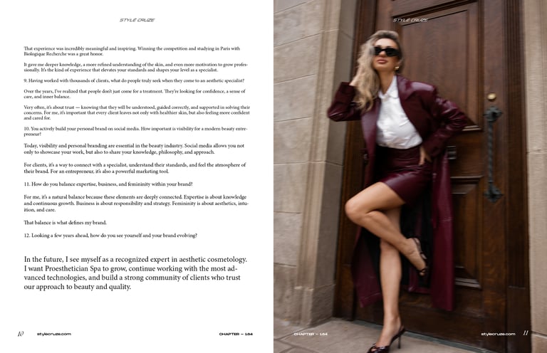 For me, it’s a natural balance because these elements are deeply connected. Expertise is about knowledge and continuous growth. Business is about responsibility and strategy. Femininity is about aesthetics, intuition, and care.